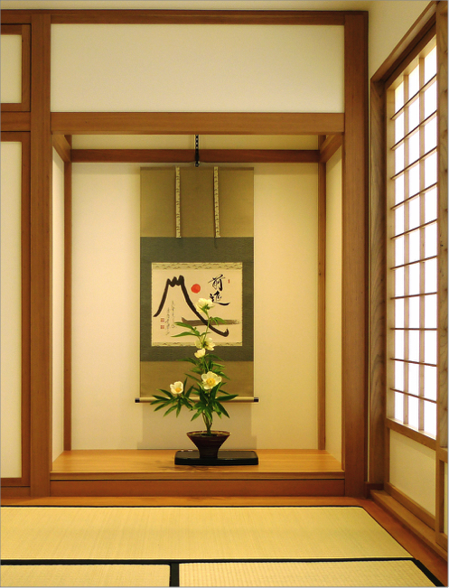 In a traditional Japanese house, the room with the Tokonoma is considered the most important place in the house and is used primarily to entertain guests and for special occasions. The Tokonoma displays artwork, a hanging scroll, and Ikebana incorporating seasonal flowers in harmony with the season and artwork on display, both ikebana and artwork are arranged to reflect the changing seasons.
